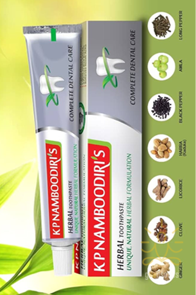 | K. P. Namboodiri's Herbal Toothpaste is made from premium-quality and selectively chosen natural and herbal ingredients: ginger, amla, long pepper, black pepper, harra, licorice, and clove. Prepared using traditional methods, this toothpaste helps you by providing total dental care to fight bad breath, cavities, plaque formations, and bleeding gums and help you strengthen your teeth and gums. Fluoride-free and has been clinically proven to be effective. |